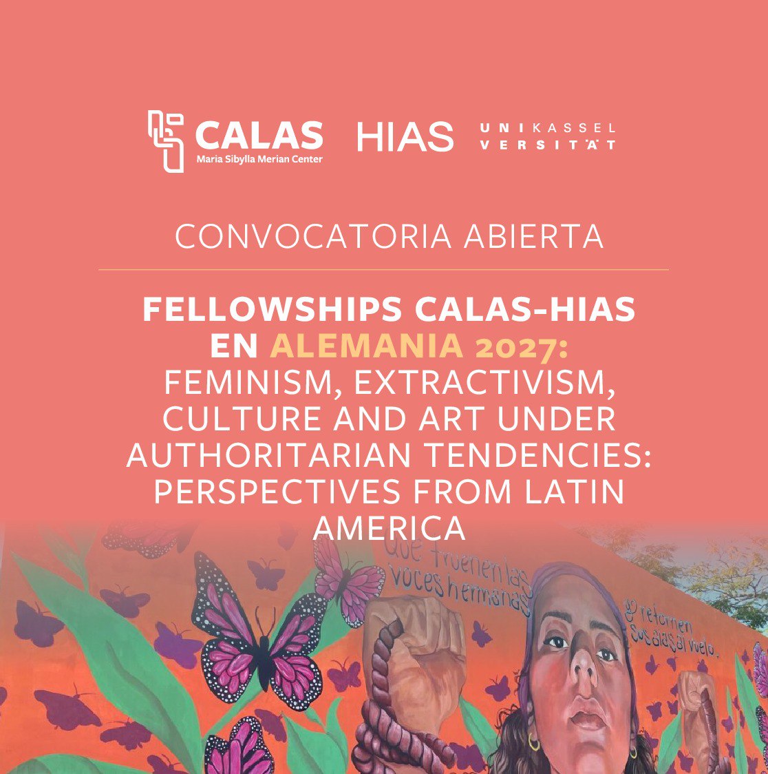 The Maria Sibylla Merian Center for Advanced Latin American Studies in the Humanities and Social Sciences (CALAS) and the Hamburg Institute for Advanced Study (HIAS) invite outstanding scholars from Latin America and the Caribbean to undertake research projects for a total of six months—four months in Hamburg and two months at the University of Kassel, Germany.