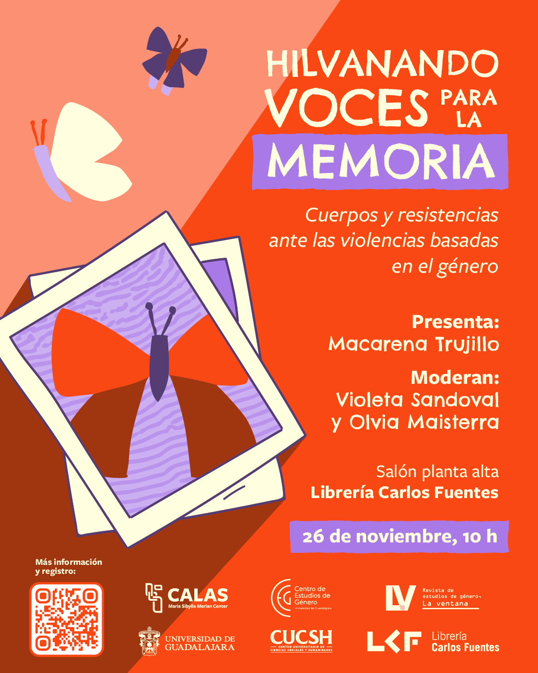 El Centro Maria Sibylla Merian de Estudios Latinoamericanos Avanzados en Humanidades y Ciencias Sociales (CALAS), el Centro de Estudios de Género (CEG) y la revista La Ventana de la Universidad de Guadalajara invitan a este evento, programado para el miércoles, 26 de noviembre de 2025, a las 10:00 h, en el Salón de la Planta Alta de la Librería Carlos Fuentes.