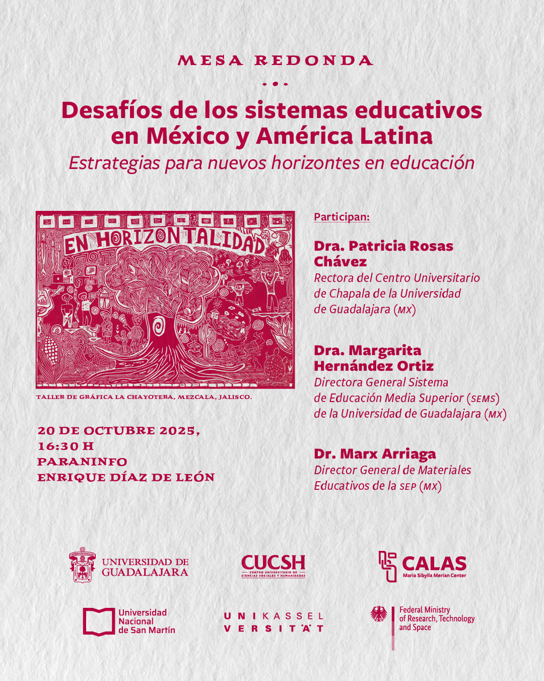 La mesa redonda se realizará el 20 de octubre de 2025, a las 16:30 h. el en Paraninfo Enrique Díaz de León de la Universidad de Guadalajara. La entrada se libre y gratuita.