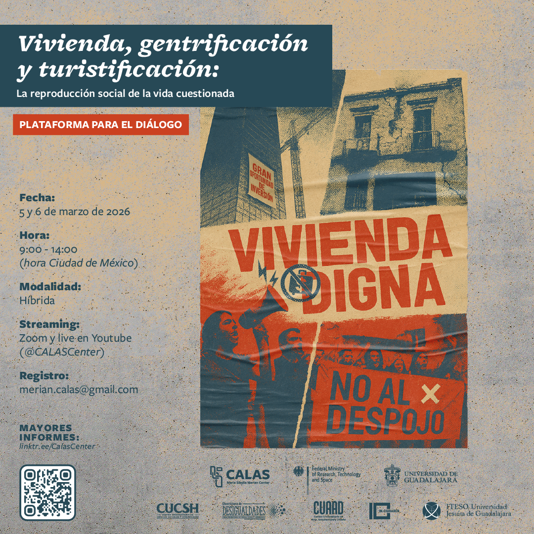 Este foro virtual, organizado por la sede principal Guadalajara del CALAS en cooperación con el Observatorio Desigualdades de la Universidad de Guadalajara, el Instituto de Investigación y Estudios de las Ciudades de la Red Universitaria de Jalisco (In-Ciudades) y el ITESO) abre un espacio para discutir las implicaciones de estos fenómenos urbanos en sus diversas aristas.